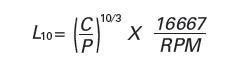 The magnitude and direction of both the thrust and radial load must be taken into account when selecting a housing. When pillow blocks are utilized, heavy loads should be directed through the base. Where a load pulls the housing away from the mounting base, both the hold-down bolts and housing must be of adequate strength. Auxiliary load carrying devices such as shear bars are advisable for side or end loading of pillow blocks and radial loads for flange units. To determine the L10 Hours Life for loads and RPM's not listed, use the following equation: