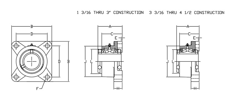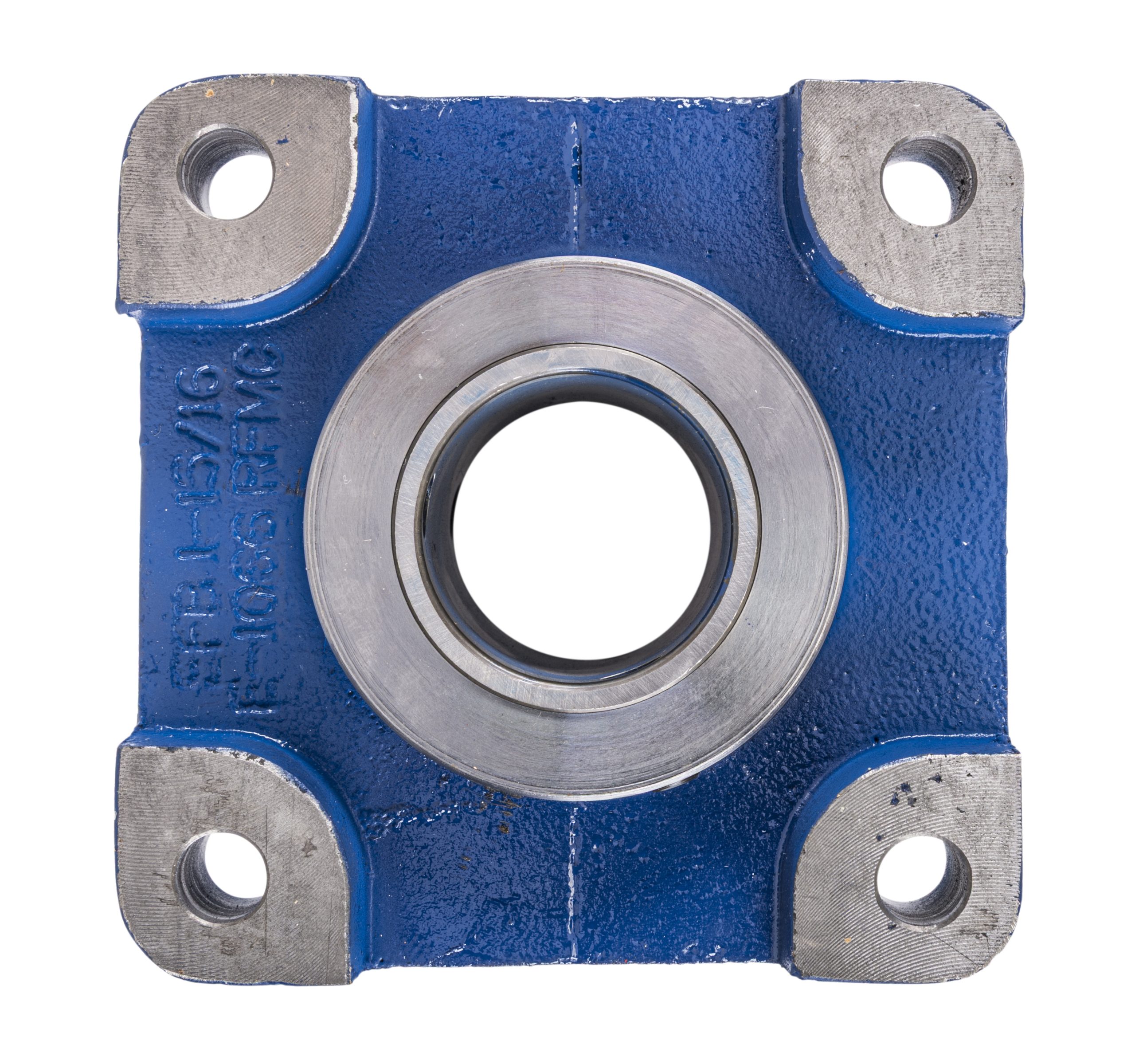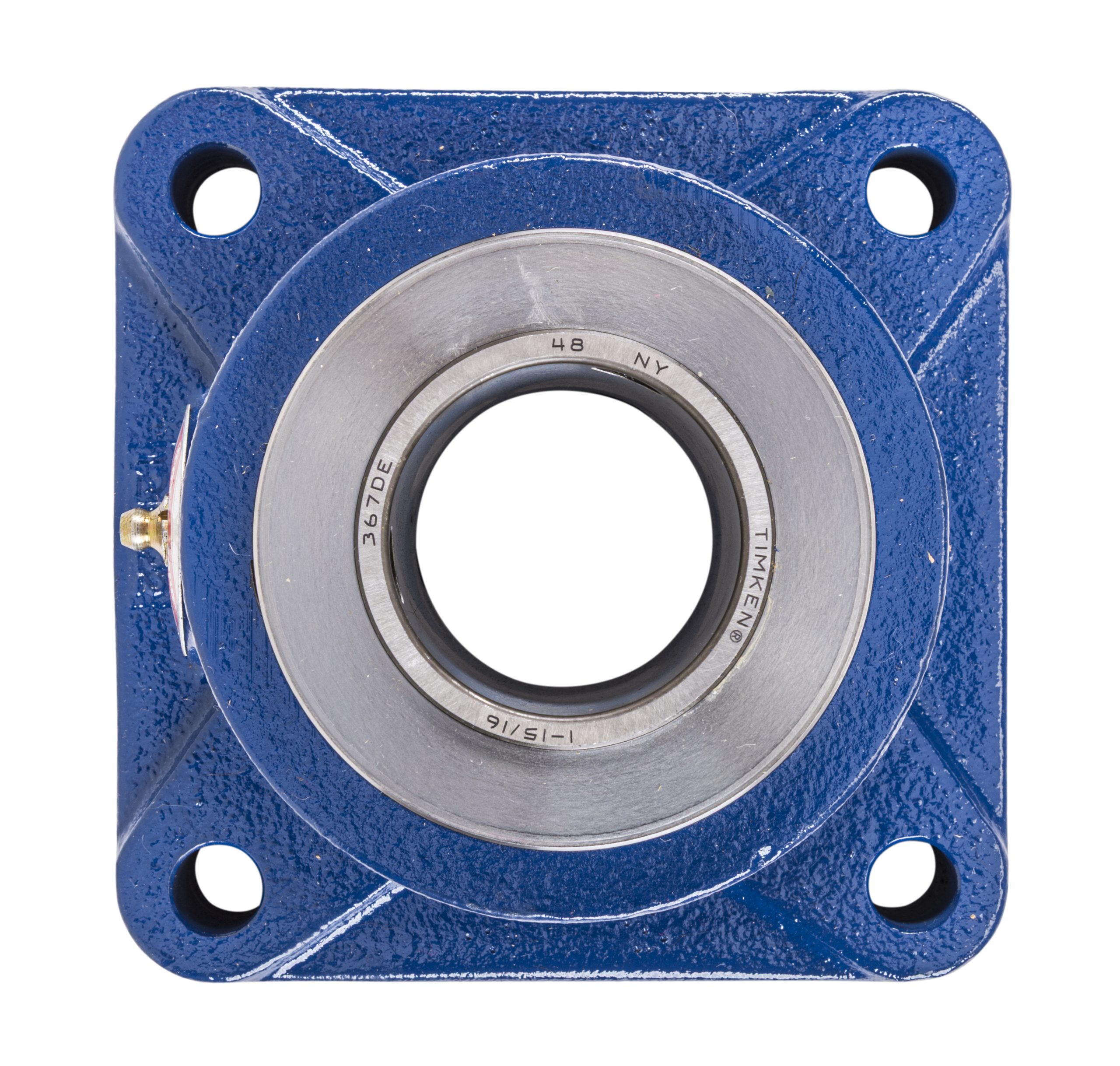 Type E” Square Flange Bearings offer all of the features of the pillow block series. They are available in shaft sizes from 1 3⁄16″ thru 4 1⁄2″. These units are well suited for mounting on horizontal or vertical frames or supports. Gray iron housing furnished unless otherwise specified.