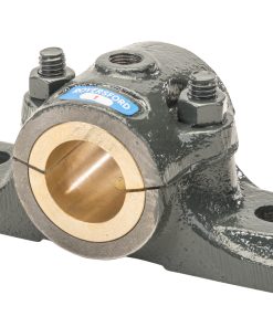 Split bearings are recommended for application where it is necessary to remove a cap for servicing or replacing a bearing. This style eliminates removing pulleys and couplings from the shaft when replacement is required. Loading range is limited to 30° below the joint. The angular parting of the cap is provided with shims to compensate for wear and adjustments.